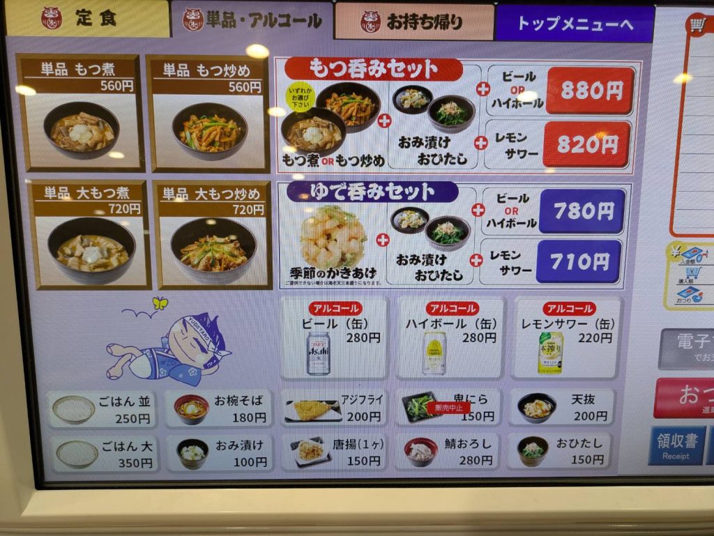 もつ煮ともつ炒めがありますが、炒めを選択。