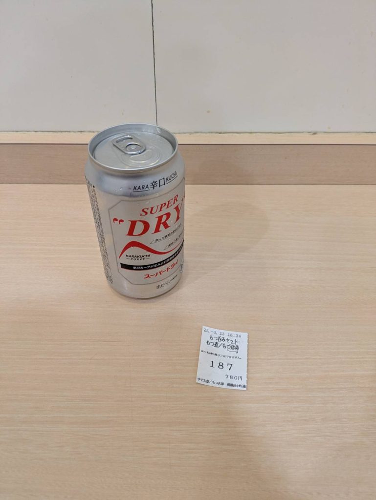 食券を出したら、缶ビールがそのまま冷蔵庫から手渡しされます。